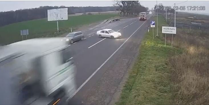 пасат повільно виїжджав перед авто, яке мусило притормозити і зустрічна фура потоком повітря пришвидшила розворот, а наступна вже збила.