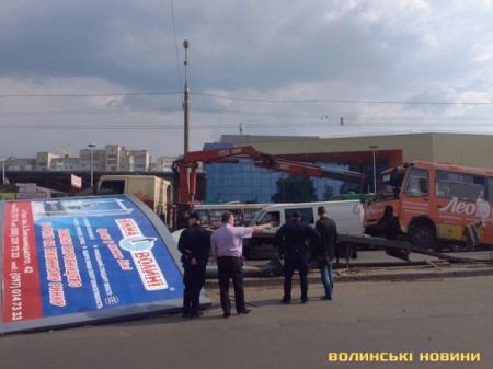 Нагадаємо, сьогодні близько 14 години біля гіпермаркету Там Там маршрутка №47 в’їхала в стовп зовнішньої реклами і збила його. Рекламний щит упав на маршрутку з людьми. ФОТО