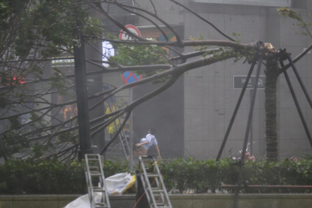 У неділю «Мангкхут» пішов у бік Китаю. Швидкість вітру на південному узбережжі досягає 242 кілометрів на годину. У деяких районах Гонконга вже затопило вулиці. Китайські державні ЗМІ із посиланням на метеорологічну станцію провінції Гуандун повідомляють, що із низькогірних районів евакуювали близько 2,4 мільйона людей.