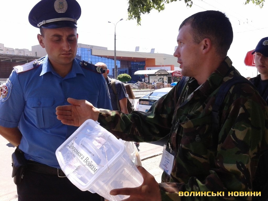 На зупинці поблизу гіпермаркету Там-Там, з боку Варшавського ринку, небайдужі лучани затримали псевдоволонтера. На місце події вони і викликали правоохоронців. Міліціонери вилучили у псевдоволонтера документи і забрали його у міськвідділ для з’ясування усіх обставин справи.