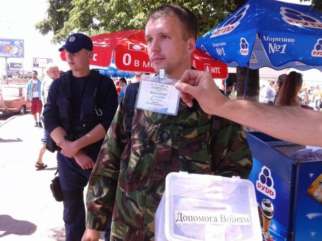 Цей збирає гроші вже десь пів року. Збирав в центрі на Волі, у Сільпо (у адміністраціі магазину є точно відео).Пам'ятаю збирав на батальйон Свята Марія.