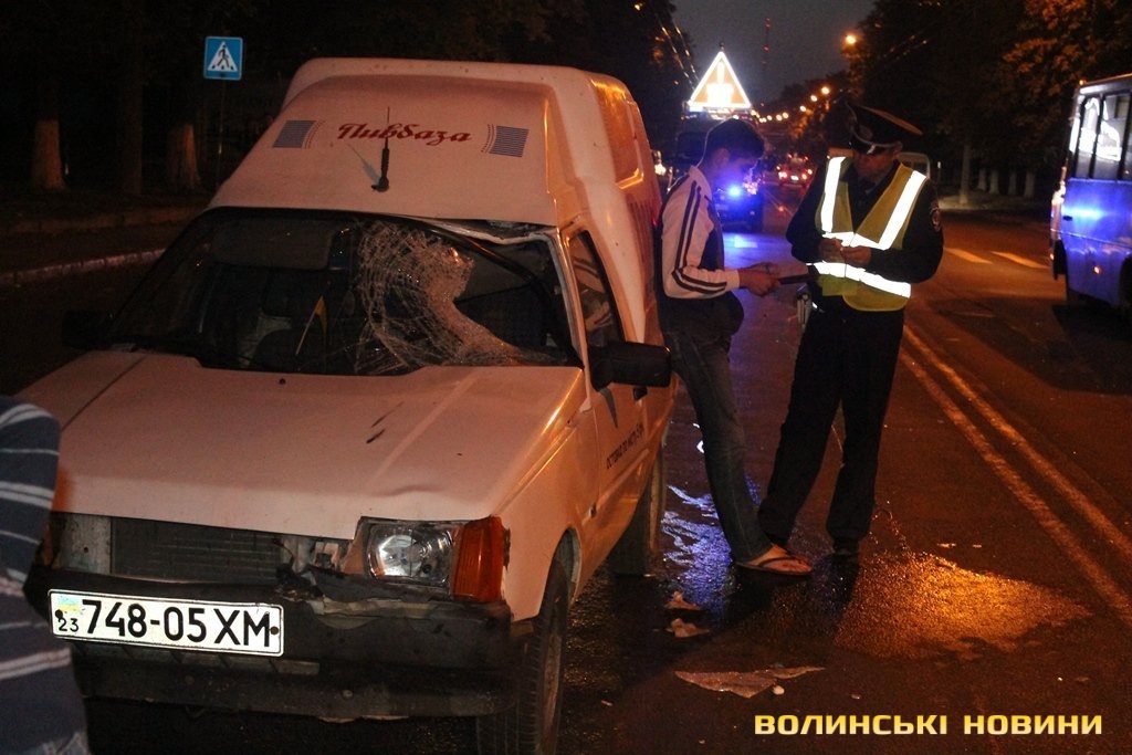 ДТП з важкими наслідками трапилася у Луцьку по проспекту Відродження. На місці автопригоди величезна калюжа крові та розкидані речі постраждалого. Зі слів правоохоронців, чоловік, який став жертвою аварії, помер у кареті швидкої.