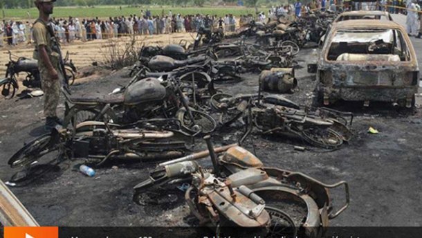 #Pakistán Mueren 123 personas y 146 resultan heridas, 60 en estado crítico, en el incendio de un camión cisterna pic.twitter.com/KAUVBaZzM1