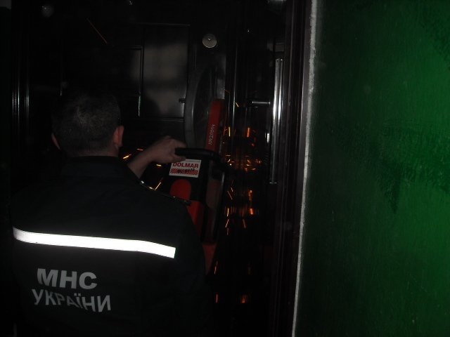 Для того, аби відчинити брьоновані двері квартири, бійці МНС змушені були застосувати спеціальний механічний інструмент.