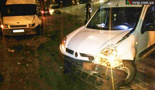 Білого «Renault Kangoo» занесло на дорозі і він виїхав на зустрічну смугу. Тут машина врізалась з мікроавтобусом «Ford Transit», також білого кольору.