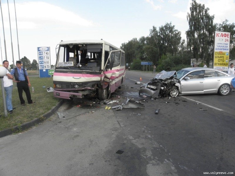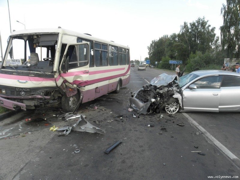 Виїзд з Ковеля. Пряма дорога, ніяких поворотів. Середина дня, чудова видимість. Попутних автомобілів не було, на обгін ніхто не йшов (за свідченнями пасажирів і водія автобуса). За кермом Audi -- старший чоловік, який до того ж взагалі не вживає спиртного (це підтвердить будь-хто, хто його знає особисто). Водій автобуса здалека побачив, що Audi плавно і неконтрольовано виїжджає на зустрічну смугу, встиг відвести автобус максимально вправо і зупинитись перед зіткненням. Гальмівного шляху Audi немає, відповідно водій взагалі не гальмував, рухався лінійно. Пошкодження в Audi лише в зоні деформації в передній частині автомобіля (яка спеціально спроектована, щоб деформуватись, гасячи енергію удару) при суттєвій різниці в масі обох транспортних засобів не на користь легковика. Жертв немає, найбільш серйозні пошкодження в водія Audi, який єдиний зі всіх на даний момент перебуває в лікарні, перенісши важку операцію.