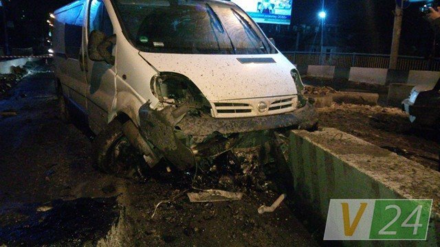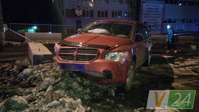 Dodge, очевидно, намагався обігнати бус Nissan. Сталося так, що обидві машини опинилися в зоні ремонтних робіт. Вони врізалися в бетонні блоки, які служили огорожею для ремонтників. Блоки рознесло на шматки. Постраждали також обидві машини.