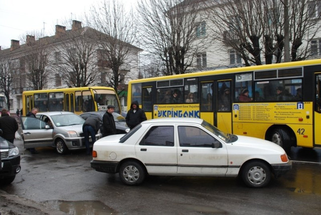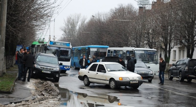 Аварія в центрі Луцька: стоять 4 автівки та близько 20 тролейбусів. ФОТО