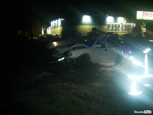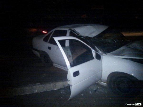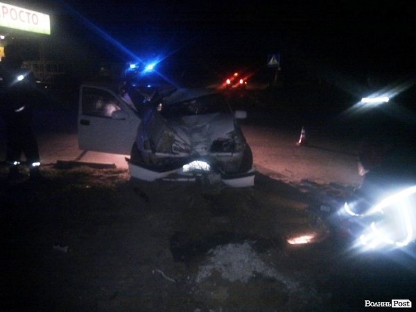 Автівка у Луцьку знесла та розламала навпіл стовп. ФОТО
