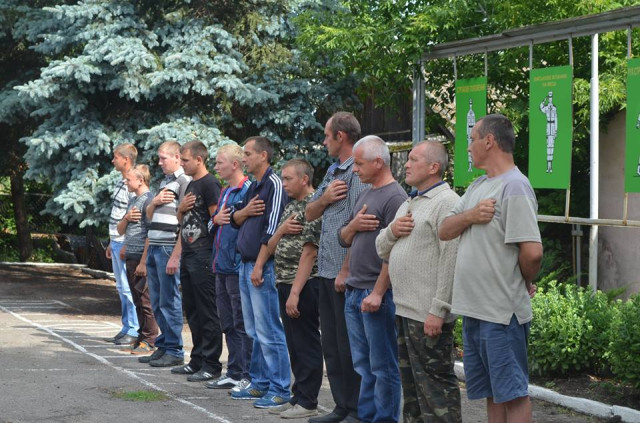 Настоятель парафії св. Архистратига Михаїла отець Віктор Возняк благословив бійців молитвою і святою водою та вручив кожному іконки, які оберігатимуть їх під час служби, а волонтери традиційно пов’язали на плечі захисникам Державний Прапор України.