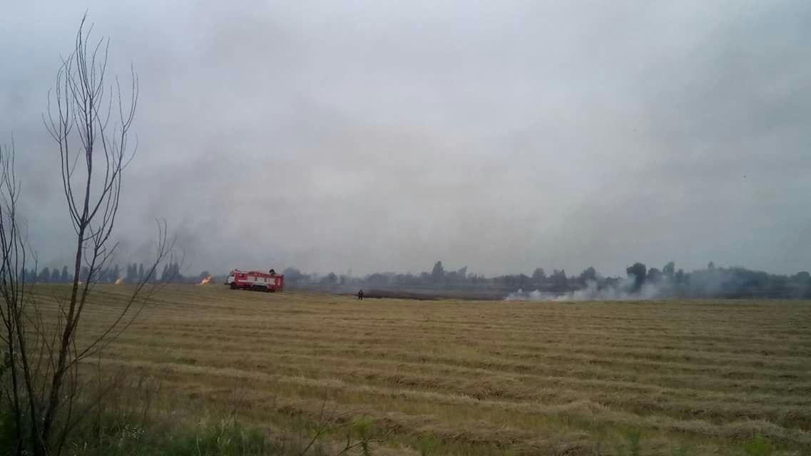Біля села Милуші Луцького району підпалили стерню, вогонь почав рухатися у напрямку села.
