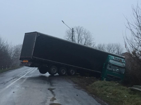 Поблизу Луцька, на виїзді з Княгининка у напрямку села Жидичин, вантажівка з’їхала в кювет і частково перекрила дорогу.
