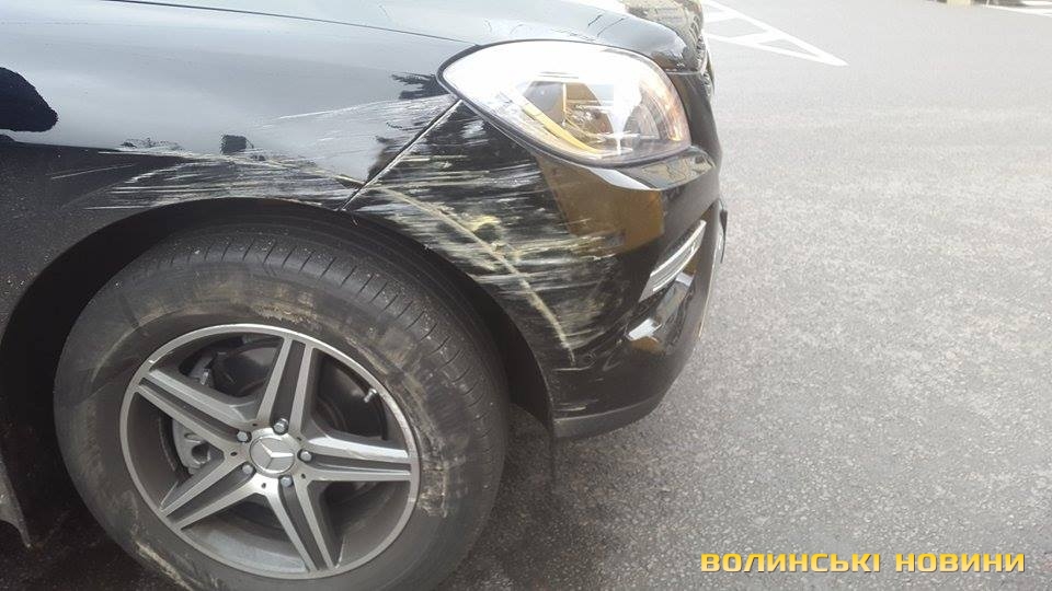 У результаті ДТП Mersedes отримав подряпини на передній правій частині бампера.