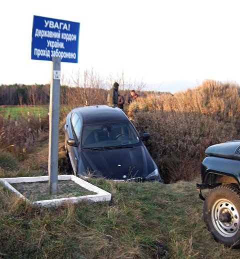 Працівники прикордонного патруля зауважили, що зі сторони Білорусі на великій швидкості рухається джип, водій якого намагається потрапити в Україну, об’їхавши пункт пропуску. Іноземець на автомобілі BMW X6 спробував їхати меліоративним каналом, по якому проходить державний кордон. Однак позашляховик застряг між двома державами.