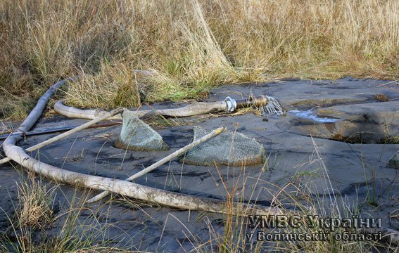 Затримані були одягнені в робочий камуфльований одяг, поблизу них знаходилися дві ввімкнені саморобні помпи з приєднаними шлангами, були вириті чотири ями 2 метри завглибшки, на місці події виявили два трактори, мікроавтобус, мотоцикл та три легкові автівки.