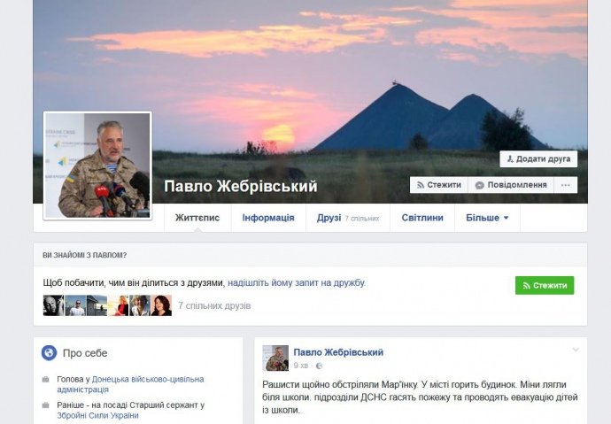 "Рашисти щойно обстріляли Мар'їнку. У місті горить будинок. Міни лягли біля школи. підрозділи ДСНС гасять пожежу та проводять евакуацію дітей із школи", - підтвердив у Facebook донецький губернатор Павло Жебрівський, але потім видалив це повідомлення.