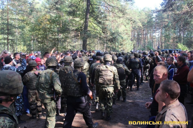 До слова, як повідомив головний міліціонер Волині Петро Шпига, серед присутніх лише 3-5 % волинян, решта - це бурштинокопачі з Рівненщини, Житомирщини. Слід зазначити, що вчора «гастролери» вже намагались перекрити Варшавську трасу, проте підпаленої шини та недолугих дій для цього виявилось недостатньо – спроба не увінчалась успіхом. П’яні, агресивно налаштовані чоловіки не йшли на контакт та двічі намагались блокувати проїзд колони з керівництвом області та силових структур, а також журналістів: на блокпостах поблизу сіл Вовчицьк та Костюхнівка.За станом на вечір 23 вересня, на місці працювали слідчі. Затримано 20 автомобілів та більше 80 незаконних копачів. Вилучили спорядження, десятки кілограмів бурштину, а також грошові кошти в сумі 200 тисяч гривень, які, вочевидь, були призначені для покупки сировини.