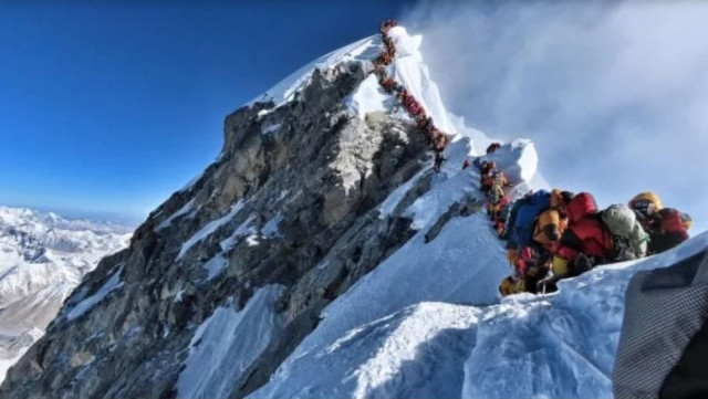Перш ніж вийти на фінальний відрізок шляху до вершини, альпіністи змушені проводити час в черзі на пронизливому вітрі. На це йде від 20 хвилин до півтори години.