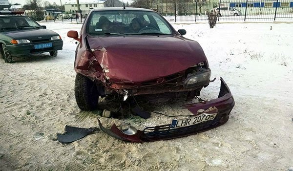 На перехресті він зупинився для того, щоб пропустити транспорт, який рухався йому назустріч. У той момент легковик «Фіат» на слизькій дорозі не зміг вчасно загальмувати і врізався у мікроавтобус.