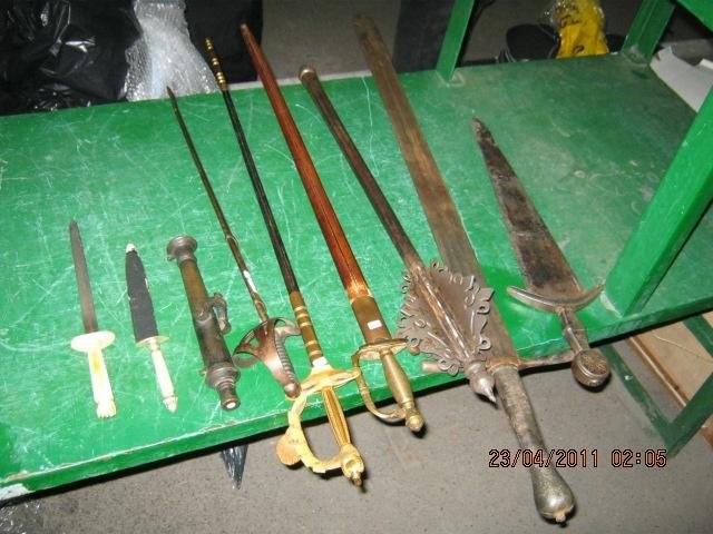 Серед прихованих предметів – чинквідеа, меч, пернач, 2 шпаги з піхвами, 2 кортики, шабля, фальконет.