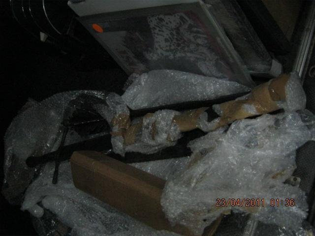 Предмети зброї знаходились під заднім сидінням та в ніші над сидінням водія за телевізором. Вони були виявлені під час проведення прикордонно-митного огляду.