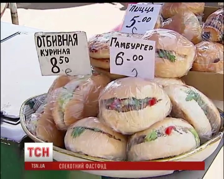 Тим часом в Україні ятки з хот-догами та біляшами розміщені практично усюди. У чергу вишиковуються охочі поласувати шаурмою. Сонце припікає, а пиріжки і піца ризикують підсмажитися вдруге. Продавці саморобної продукції від сонця рятують свою продукцію тим, що просто її пересовують у тінь. Проте документи показати не можуть. Мовляв, забули вдома.