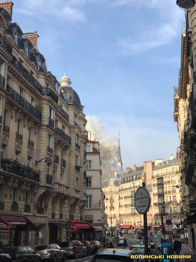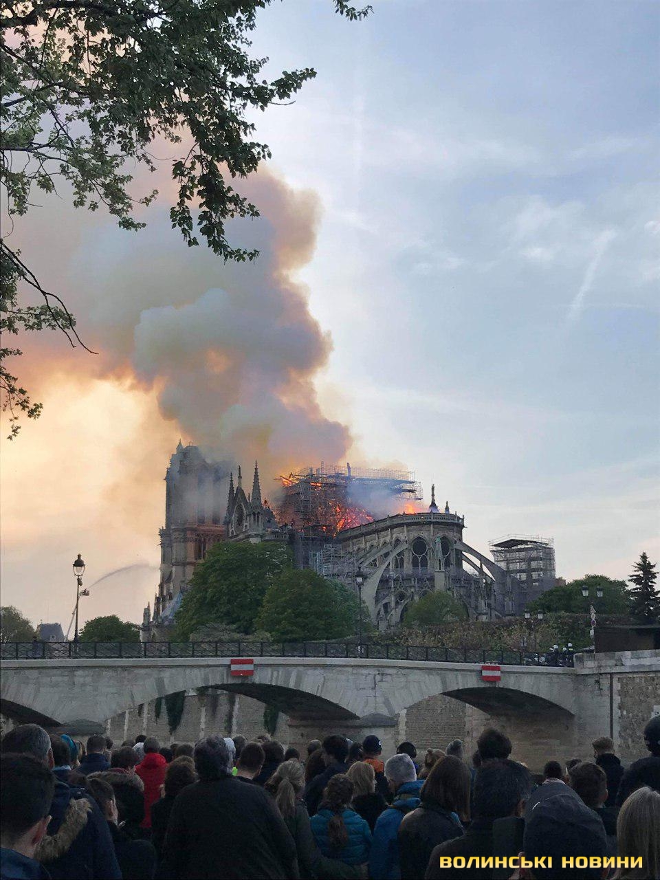 «Через 15 хвилин вогонь вже охопив шпиль, приїхали пожежні та поліція, але місця там зовсім мало, до того ж всі зупинялись, аби зробити фото, тож людей зібралось дуже багато. Через 25 хвилин я зрозумів, що локально погасити не вийде, бо горів вже весь дах. Приблизно за 40 хвилин даху не стало. Пожежні весь цей час, як я зрозумів, не давали опуститись вогню нижче. Він ще й досі горить але вже не так сильно», - розповідає Денис.