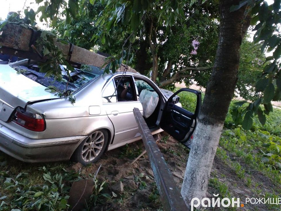 Зі слів поліції, за кермом автомобіля BMW перебував житель Дубища, Назар. Власник автівки, рожищенець, дав другу «порулити», а той не вибрав безпечної швидкості руху, не врахував обстановки – влетів на обочину поваливши дерево, металевий паркан та бетонний стовп.