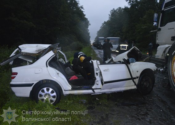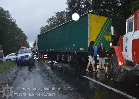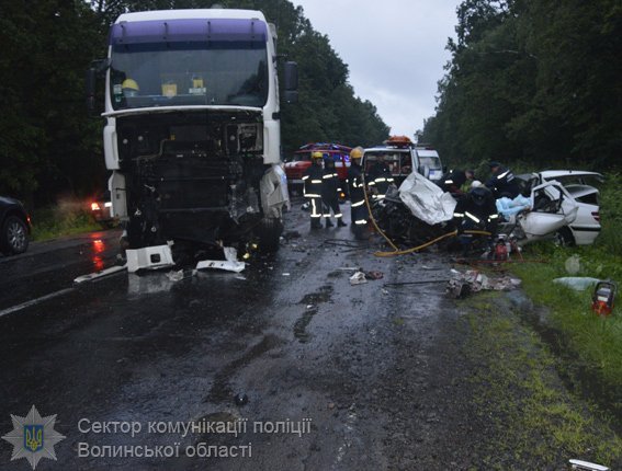 Нагадаємо, дорожньо-транспортна пригода сталася увечері 13 липня поблизу села Сокиричі Ківерцівського району - легковик зіткнувся лоб в лоб з вантажівкою MAN. Від удару передню частину легковика майже повністю зім'яло