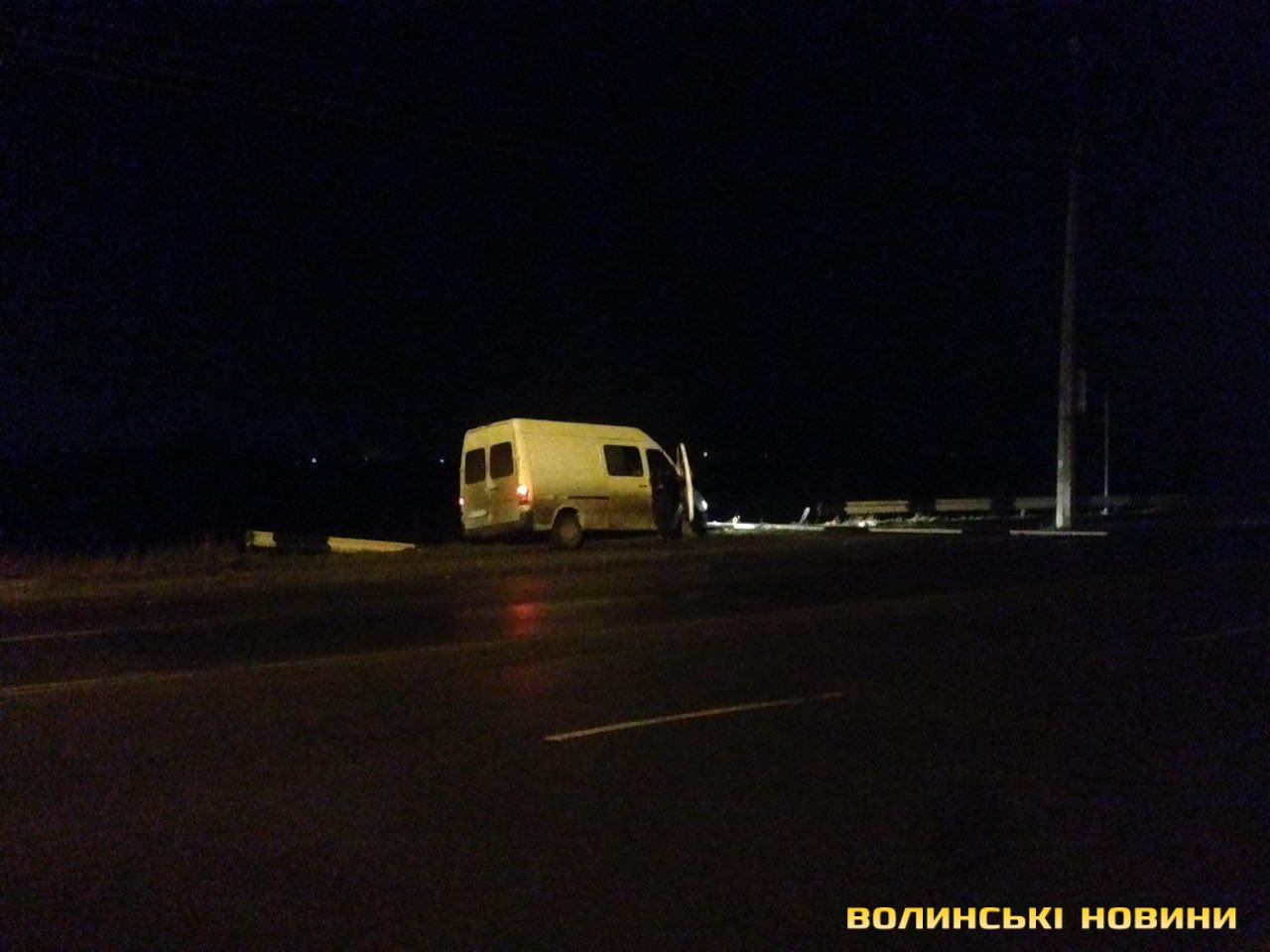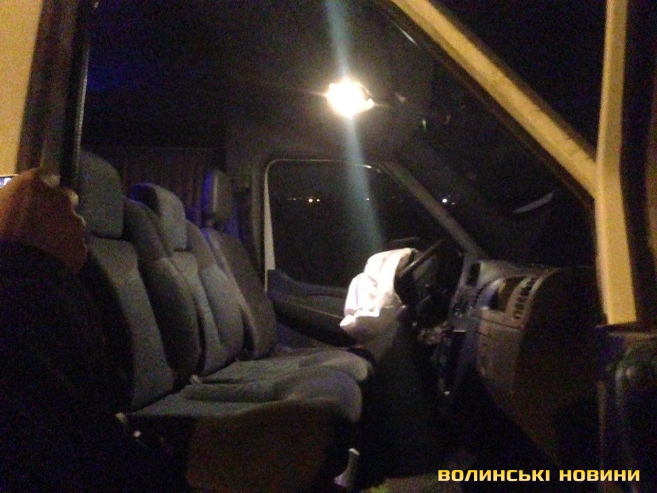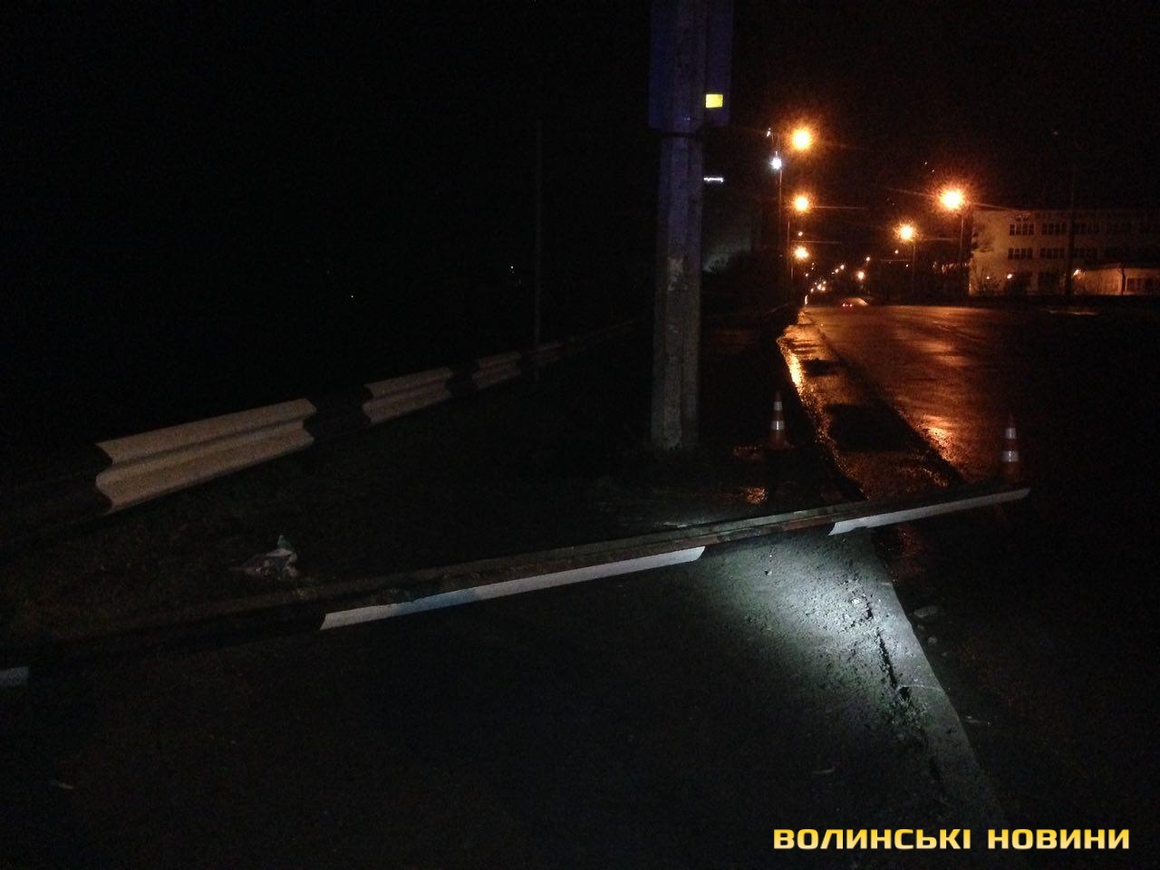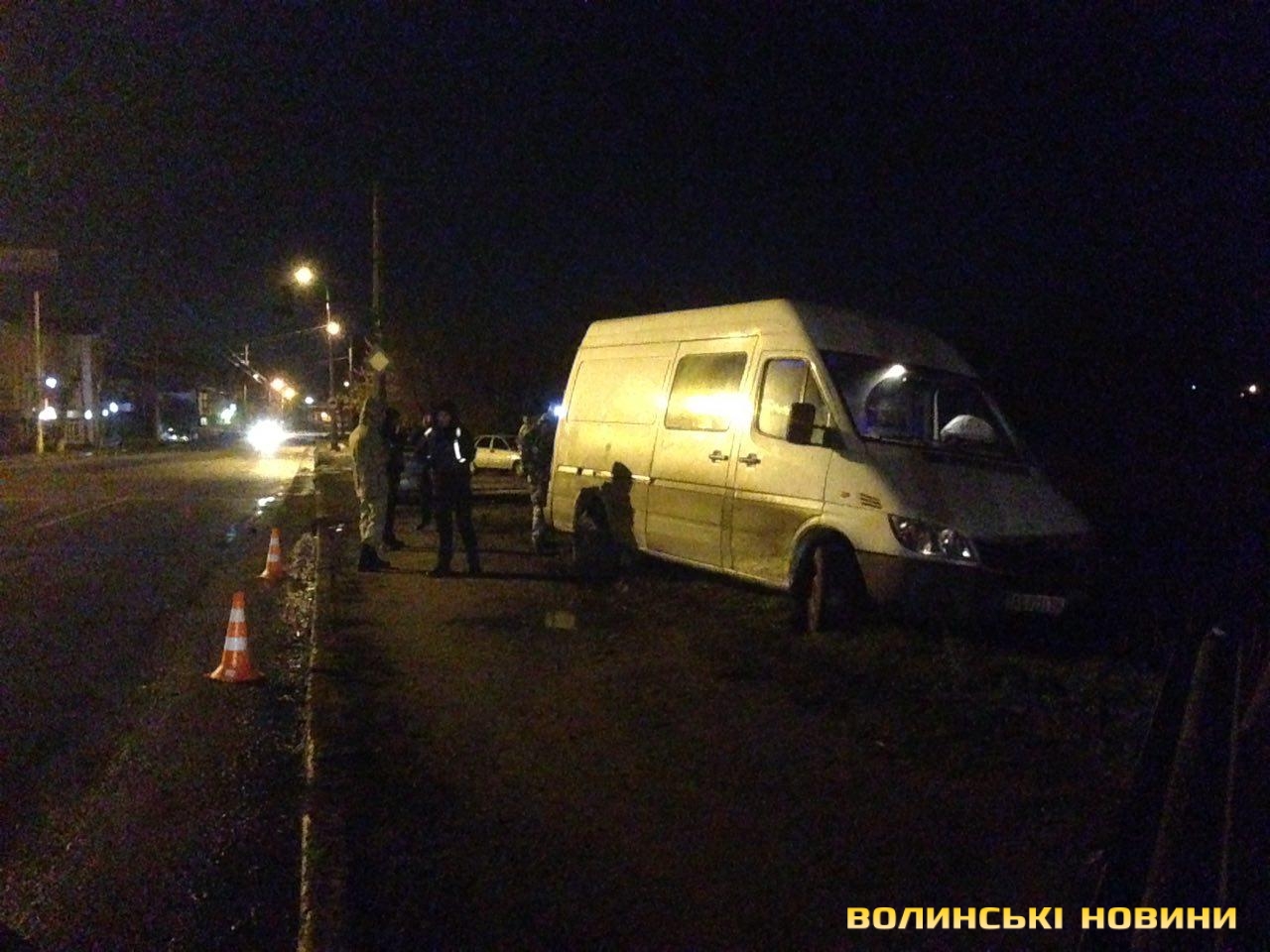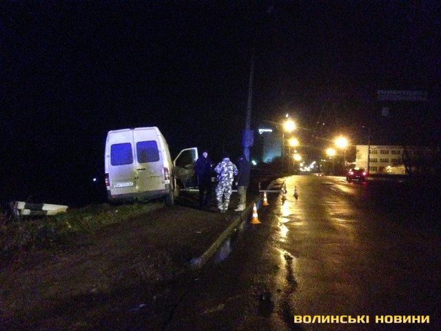 П'яний водій буса Mercedes Sprinter, рухаючись вулицею Набережна, під час повороту на вулицю Ковельську не обрав безпечної швидкості внаслідок чого авто «вилетіло» на бордюр та збило відбійник. Лише це врятувало автомобіль від того, аби він не злетів на берег річки Стир.