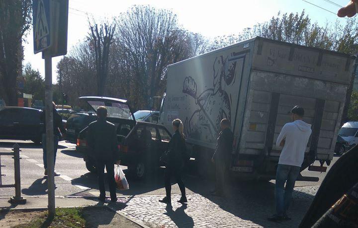 Автомобіль ВАЗ 2109 врізався у бік вантажівки на проспекті Перемоги у Луцьку.