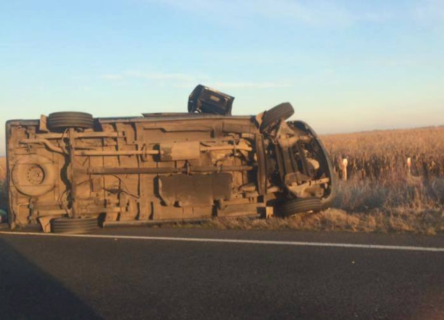 З фотографій видно, що перевернутим на боці лежить мікроавтобус. З протилежної сторони дороги – ймовірно, рама перевернутого вантажного автомобіля.