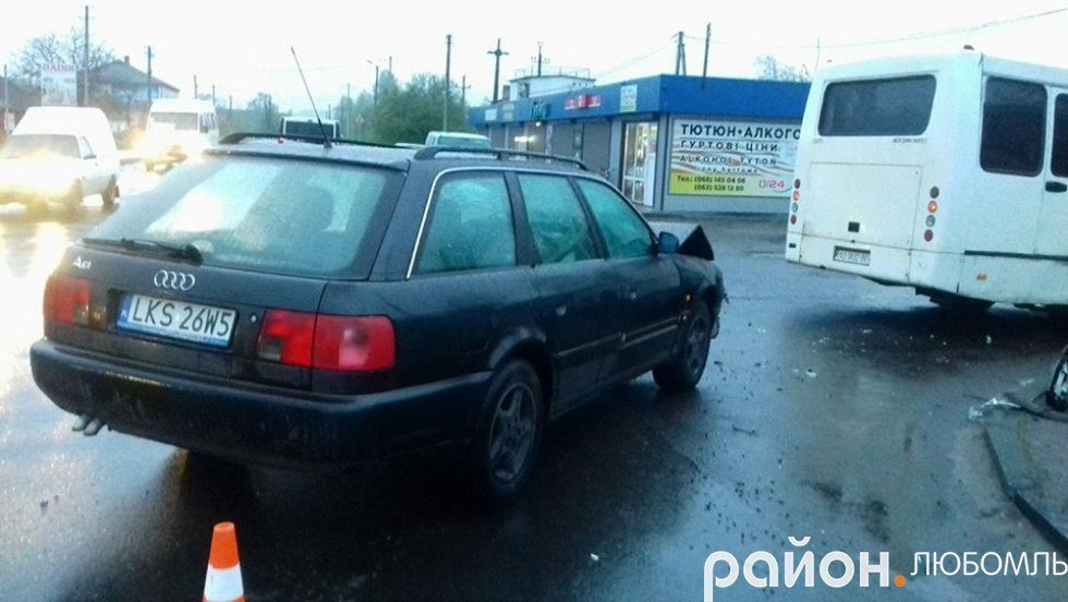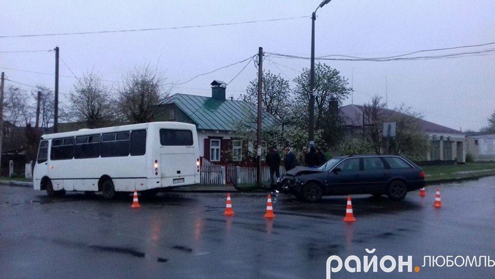 У четвер, 27 квітня, близько 20-ої години у райцентрі на повороті з Володимирської на вулицю 1-го Травня зіткнулися автобус, в якому додому їхали працівники митниці, та машина на польській реєстрації.