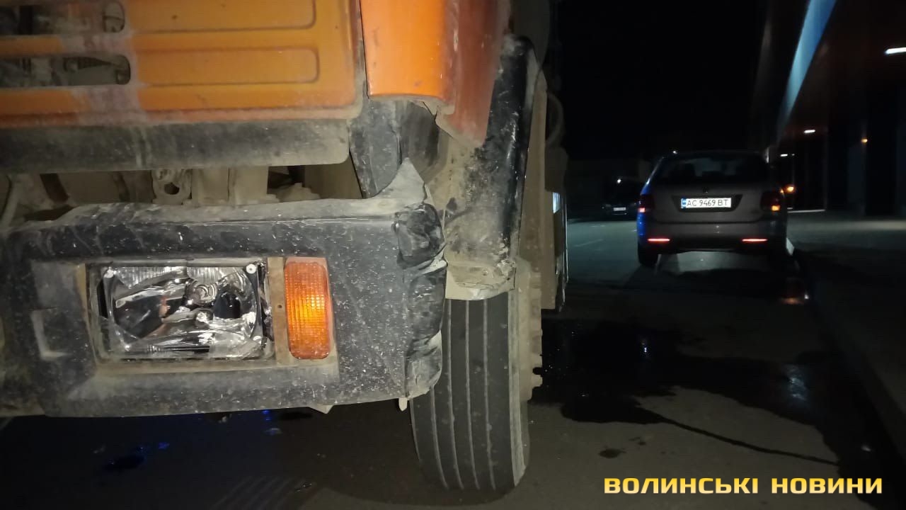 Дорожньо-транспортна пригода за участі легкового автомобіля Volkswagen та вантажного КамАЗу сталася у Луцьку вечірньої пори 12 березня