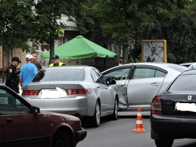 Зіштовхнулися дві автівки: «Хонда» на швидкості влетіла у лівий бік «Тойоти». В результаті на вулиці утворився затор. На щастя в аварії ніхто не постраждав. На місці ДТП працювала патрульна поліція, тож за декілька хвилин після пригоди на дорозі відновили звичний режим руху.