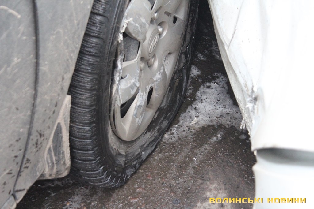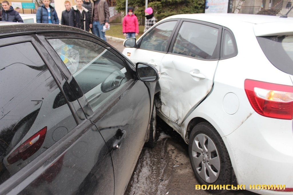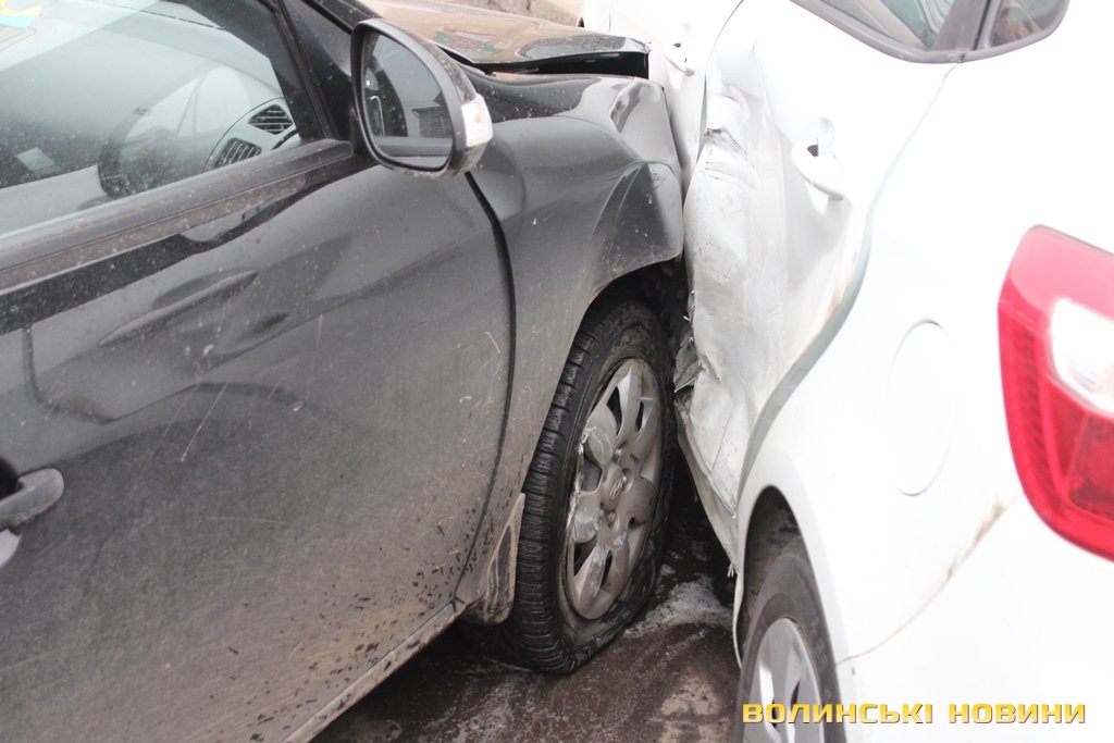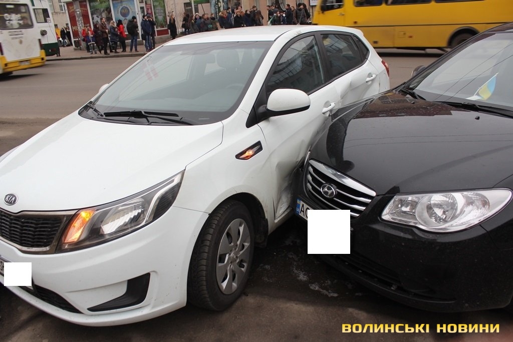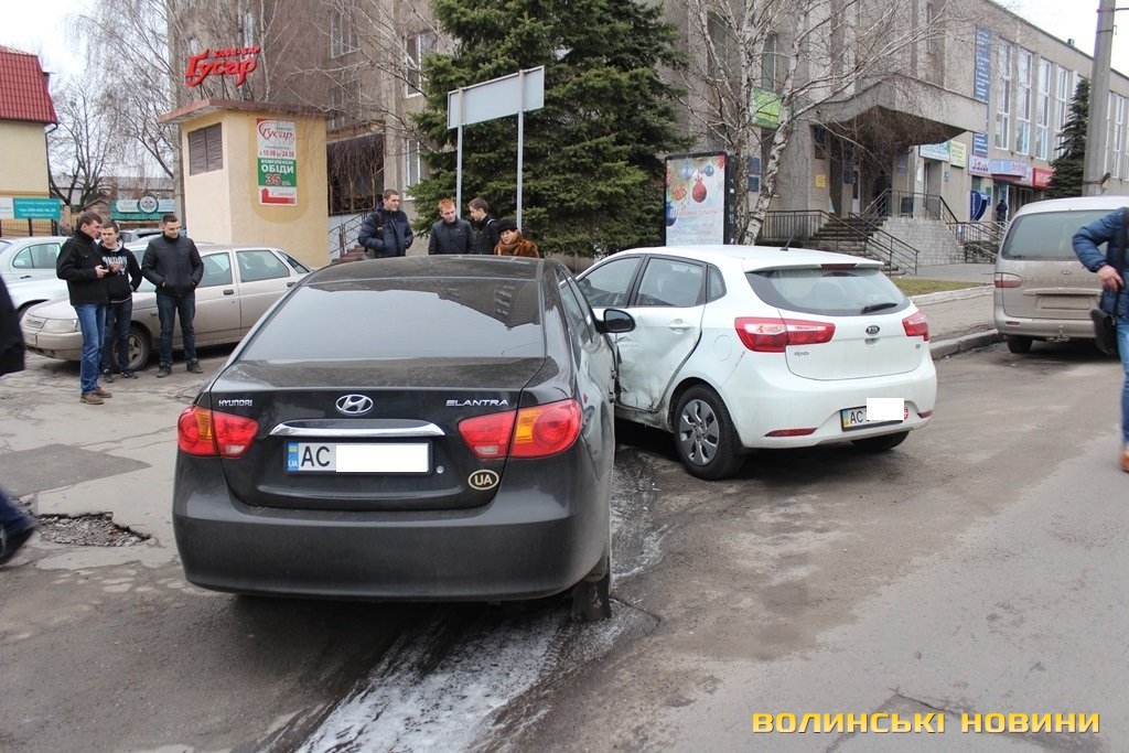 Дві автівки зіткнулися на вулиці Винниченка в Луцьку. Водій «Hyundai Elantra», переїхавши суцільну лінію, врізався у «КІА Ріо», водій якого, у той час, повертав у провулок ліворуч.
