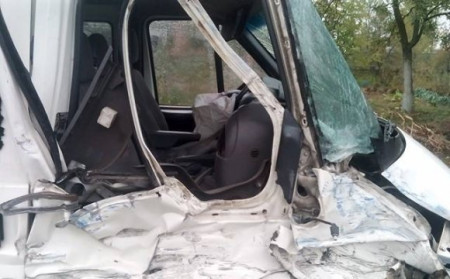 Через це бус розвернуло та відкинуло у вантажівку "КамАЗ", припарковану на узбіччі.