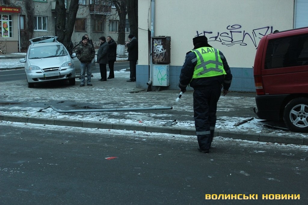 ДТП у центрі Луцька: евакуатор, збитий знак та постраждалий