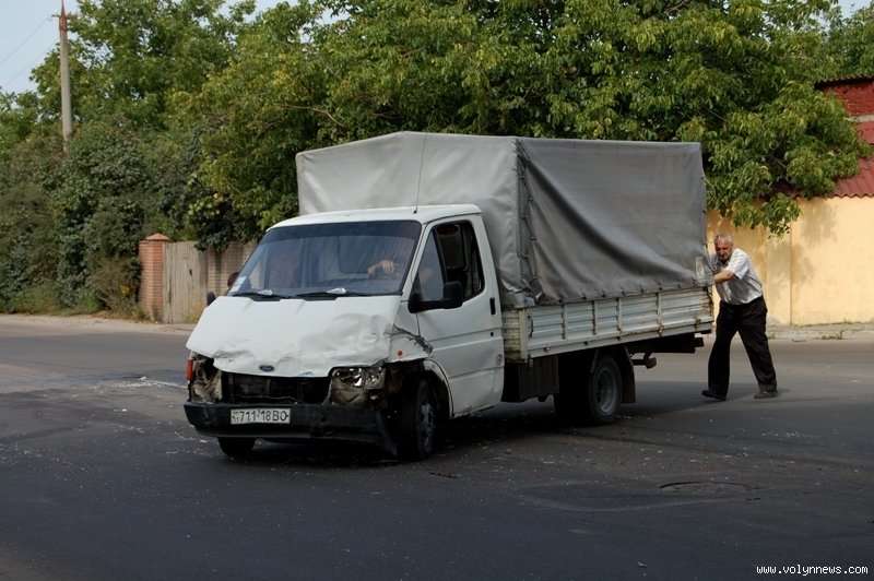 На вулиці Карпенка-Карого в Луцьку трапилась аварія – вантажівка не розминулась з легковиком, проте водії та пасажири обійшлись лише переляком.