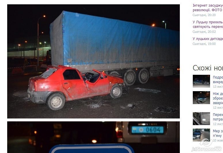 ДТП У Луцьку: легковик в'їхав під причіп вантажівки. ФОТО