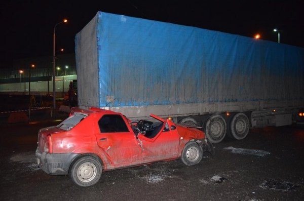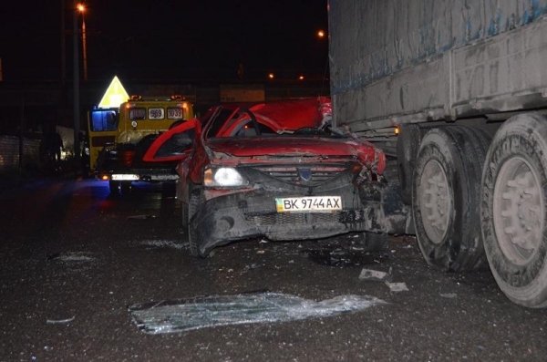 У Луцьку трапилася дорожньо-транспортна пригода: легковий автомобіль Dacia Logan зіткнувся з вантажівкою Renault, буквально влетівши їй під причіп і зім’явши свою передню частину.