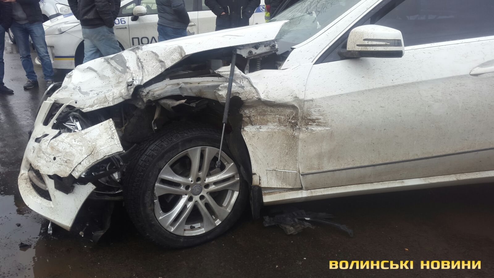 Як повідомляло Інформаційне агентство Волинські Новини, водій "Мерседеса", поспішаючи проскочити перехрестя, втратив контроль над машиною та зачепив дві вантажні машини, зніс паркан та збив 16-річного хлопця. Постраждалий отримав важкі травми, перебуває в комі в реанімаційному відділенні однієї з лікарень Луцька.