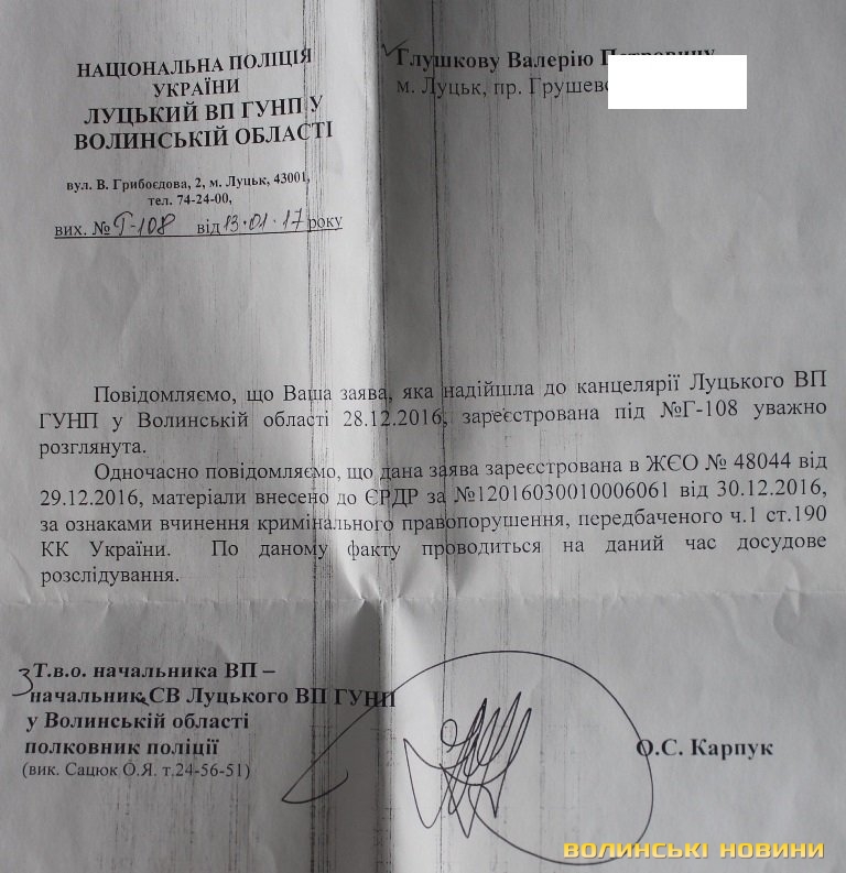 До слова, матеріали справи внесені до ЄРДР від 30.12.2016-го року за ознаками вчинення кримінального правопорушення, передбаченого ч.1 ст. 190 КК України.