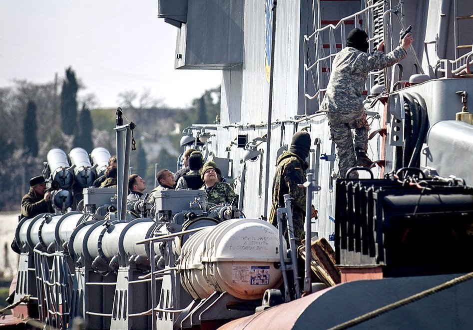 На фото захоплення корвета "Хмельницький" і "Луцьк" тут ні до чого, бо його навіть не захоплювали, а після перемовин вони відразу "здались"! А у них і виходу іншого не було! Сім'ї на березі, від України ні слуху ні духу, міністр - майданівський ляльокало... то що було хлопцям робити і що б ви, могли зробити, якби з вами так сталось? Хлопців не викідали, а запропонували перейти на службу в іншу країну з більшою зарплатнею, коли свої навіть сказати нічого не могли! Армія і флот у повній розрусі, а різні свята і паради - то показуха! А ви як собі уявляєте стрілянину один в одного, коли вони вже там жили стільки років пліч о пліч, багато хто вчився в одних училищах і академіях, сім'ї товаришували і у багатьох сім'ї "змішані", скільки років одна країна була і ви хотіли, щоб вони ворогами стали... то вони будуть стріляти один в одного?! Тут мізками політикам треба було думати, а коли їх нема - то так і виходить...:( Тільки обкрадати країну і ні про кого не турбуватись, а брехати... то таку колотнечу і маємо в Україні усі 23 роки!:(