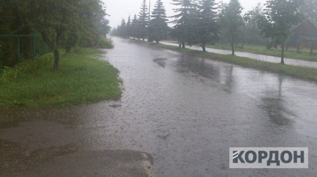 У райцентрі за лічені хвилини дороги та подвір’я перетворилися на ріки та озерця. Окремі господарі наразі намагаються викачувати воду від своїх осель за допомогою шлангів.