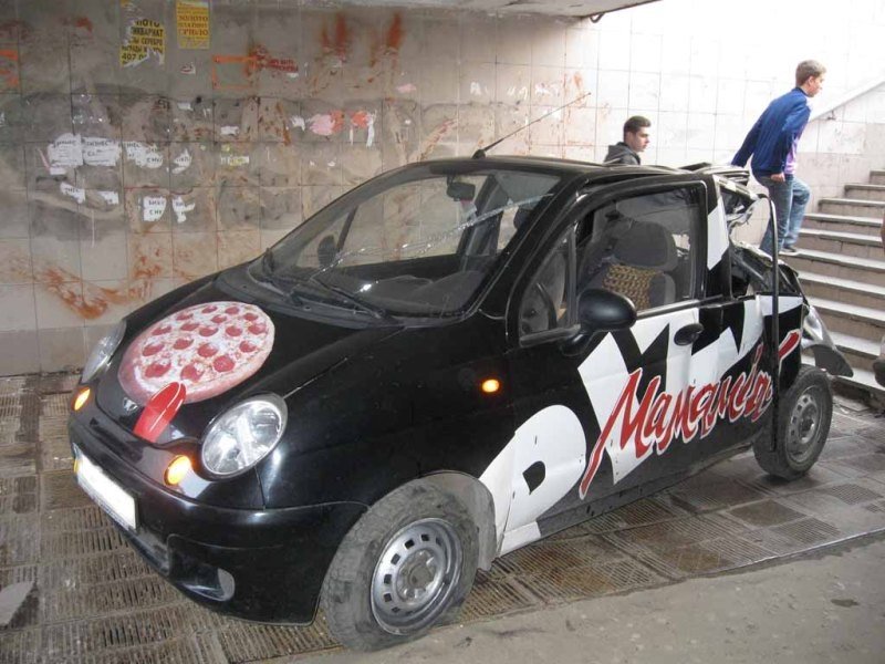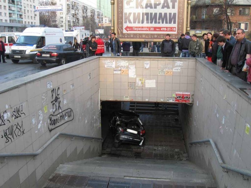 В результаті потужного удару автомобіль «Daewoo» відкинуло на тротуар, а потім машину понесло в підземний пішохідний перехід.