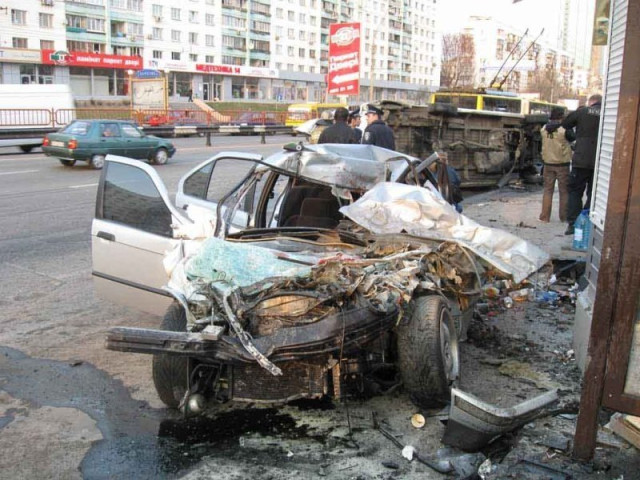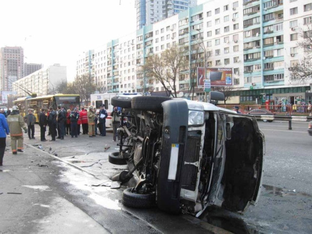 За попередньою інформацією прес-служби ДАІ України , аварія сталася з провини водія «BMW-328i», що рухався у напрямку площі Перемоги. Іномарка на швидкості налетіла на автомобіль «Honda Civic», що їхав у попутному напрямку.