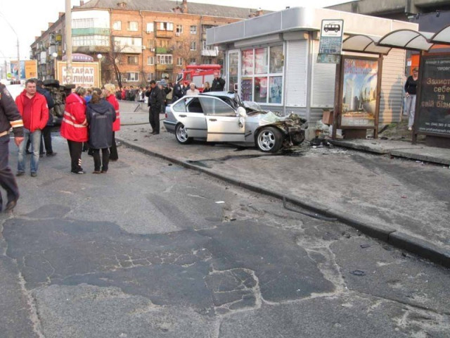 За інерцією «BMW» врізався в мікроавтобус «Volkswagen-LT 35», що зупинився на зупинці громадського транспорту. Через удар автобус ударив припарковане мікроавто «Daewoo Matiz» та перекинувся.