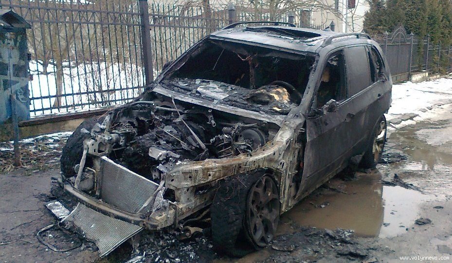 У Луцьку спалили автомобіль заступника начальника УБОЗу вартістю 120 тисяч доларів США.Вчора,4 лютого,близко 19:00 біля будинку, де винаймає кваритиру заступник начальника УБОЗ УМВС України у Волинській області, згорів автомобіль"BMW X-5" 2011 року випуску вартістю 120 тисяч доларів США.