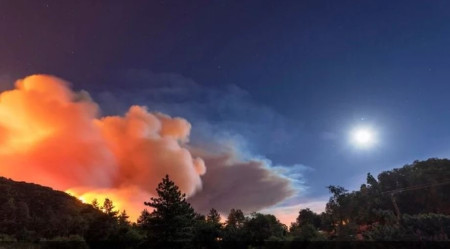 Pyrocumulus moon - One of the more apocalyptic sunsets I've watched. #AppleFire #cawx #stormhour pic.twitter.com/brJzoamEc7